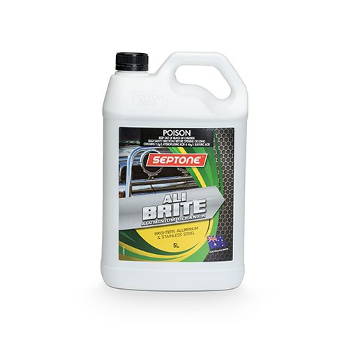 It removes corrosion and oxide films with minimal attack on the substrate and it effectively cleans stainless steel. Septone Ali Brite is commonly used to clean aluminium trailer bodies, tanks, bull bars and dinghies.