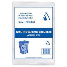 - 120LT HDPE NATURAL BIN LINERS 1100 x 950mm 200 PER CARTON