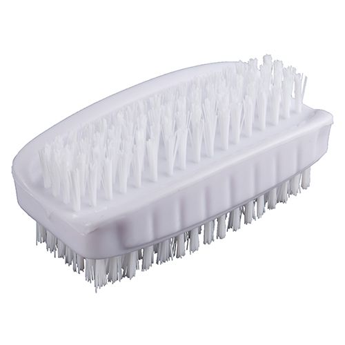 The white Double sided Nail brush is ideal for cleaning both hands and finger nails nails and has ribbed grips on both sides for a better grip when using wet. Short stiff bristles on one side are for cleaning finger nails and longer softer bristles on other side for scrubbing hands