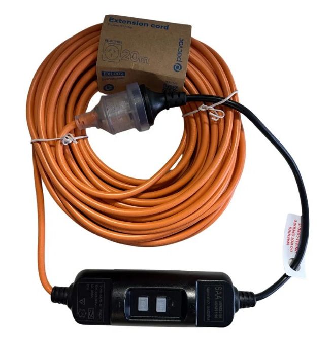 Pacvac Extension Lead With Inline RCD EXL010 Orange 20m Each