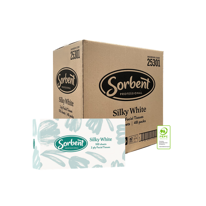 - SORBENT SILKY WHITE FACIAL TISSUES 2 PLY 100 SHEET x 48