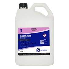 Accent Musk Disinfectant will destroy most common bacteria in bathrooms shower recesses, toilets, hotels, institutions, schools, garbage containers and kennels, whilst leaving a pleasant residual odour.