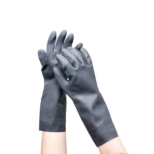 Oates quality acid and chemical resistance 100% Neoprene glove, grey, long arm, 385mm length, with micro textured palm and fingers for better gripping ability.